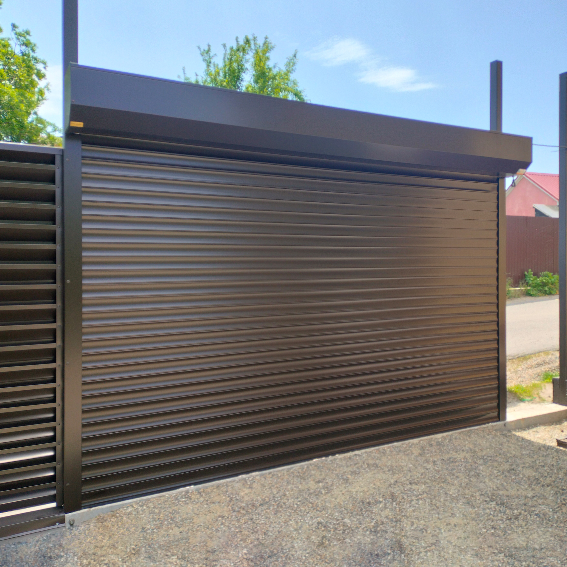 При желании клиента мы можем установить дополнительную защиту для ворот темных оттенков при условии, что они постоянно освещаются солнцем или разница температур наружней и внешней поверхности достигает 40 градусов.