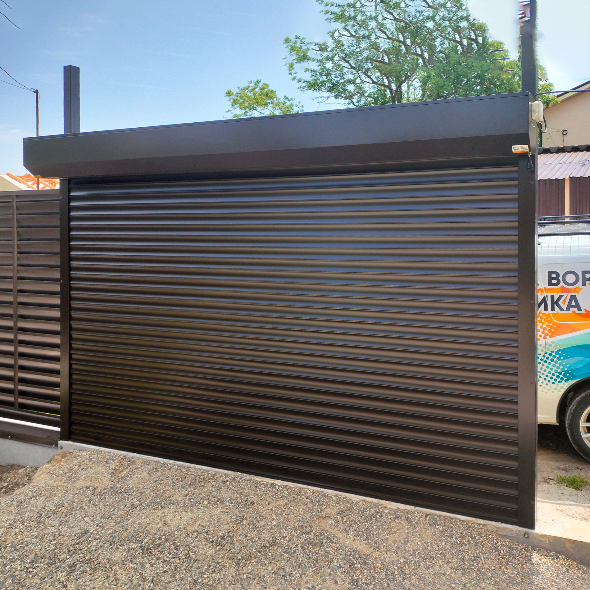 При желании клиента на ворота может быть нанесено любое изображение. Например, логотип или иные фирменные графические элементы вашей компании, а также тематические рисунки, которые отражают вид деятельности предприятия. Изображение устойчиво к ультрафиолету, благодаря чему изображение остается ярким и контрастным в течение 10 лет.